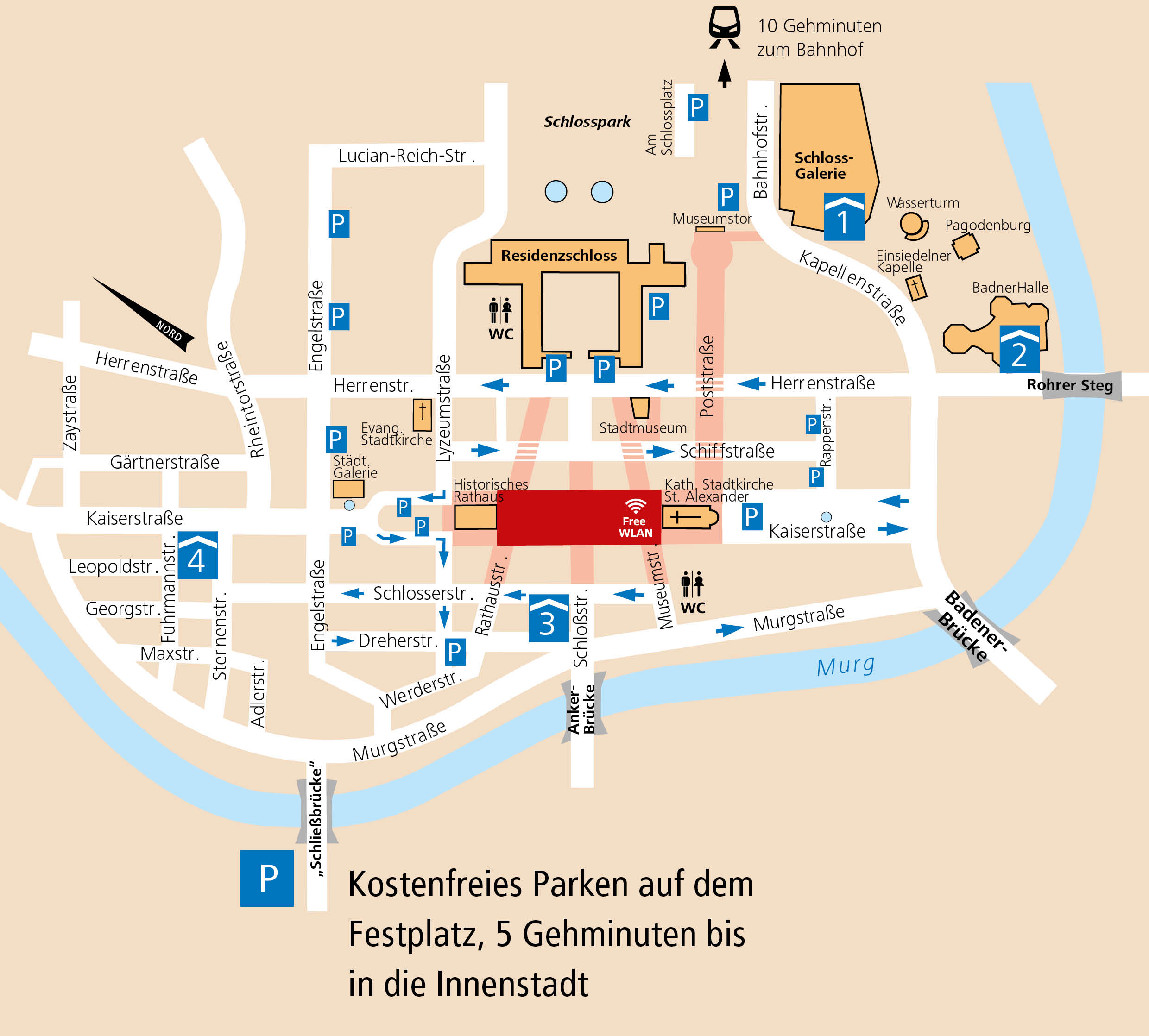 Den Rastatter Weihnachtsmarkt erreichen Sie bequem mit dem Fahrrad, dem Auto (Parkmöglichkeiten in der Innenstadt und auf dem Festplatz), dem Bus oder mit der Bahn. Vom Bahnhof in die Innenstadt sind es nur 10 Minuten.