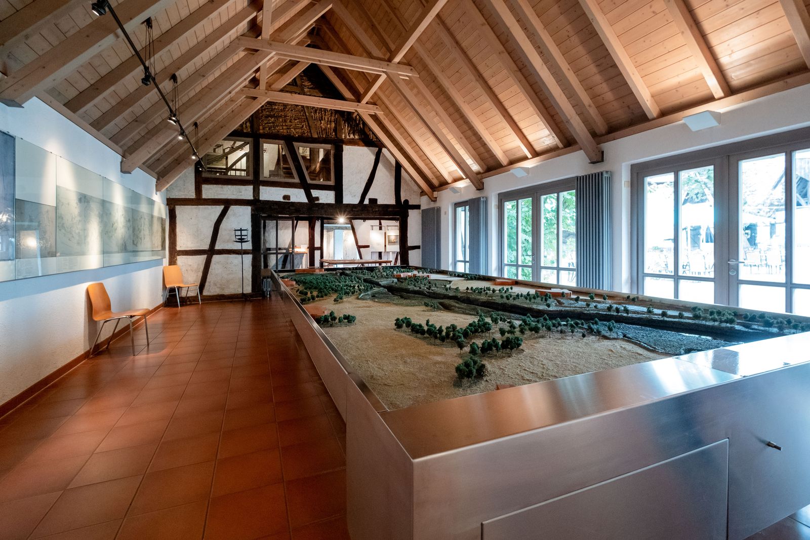 Das Museum in der Scheune ist einer von zwei Bereichen des Riedmuseums Ottersdorf. In dem historischen Gebäude dreht sich alles um den Rhein und seine Begradigung im 19. Jahrhundert durch den Karlsruher Ingenieur Johann Gottfried Tulla. Der Oberrhein wurde dadurch gebändigt und erhielt ein völlig neues Aussehen. Wie wirkte sich dieser zuvor ungestüme und mächtige Strom auf das Leben der Bewohner in den Riedorten Ottersdorf, Wintersdorf und Plittersdorf aus? Ein Einbaum aus Merowingischer Zeit, ein flutbares Modell und ein großer Schiffsbug erzählen die Geschichte.