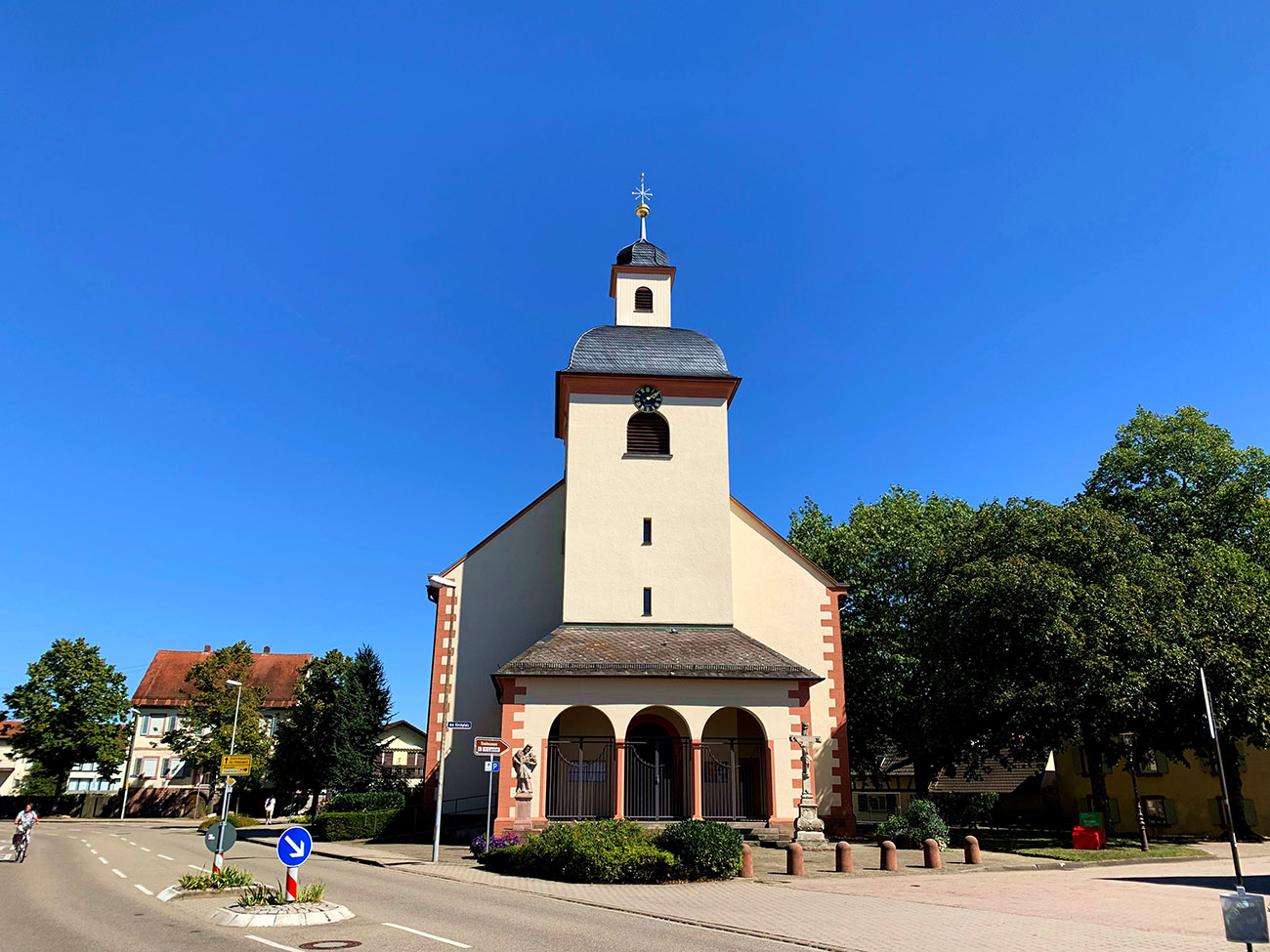 In unmittelbarer Nähe zum Rathaus Ottersdorf befindet sich die Kirche St. Ägidius.