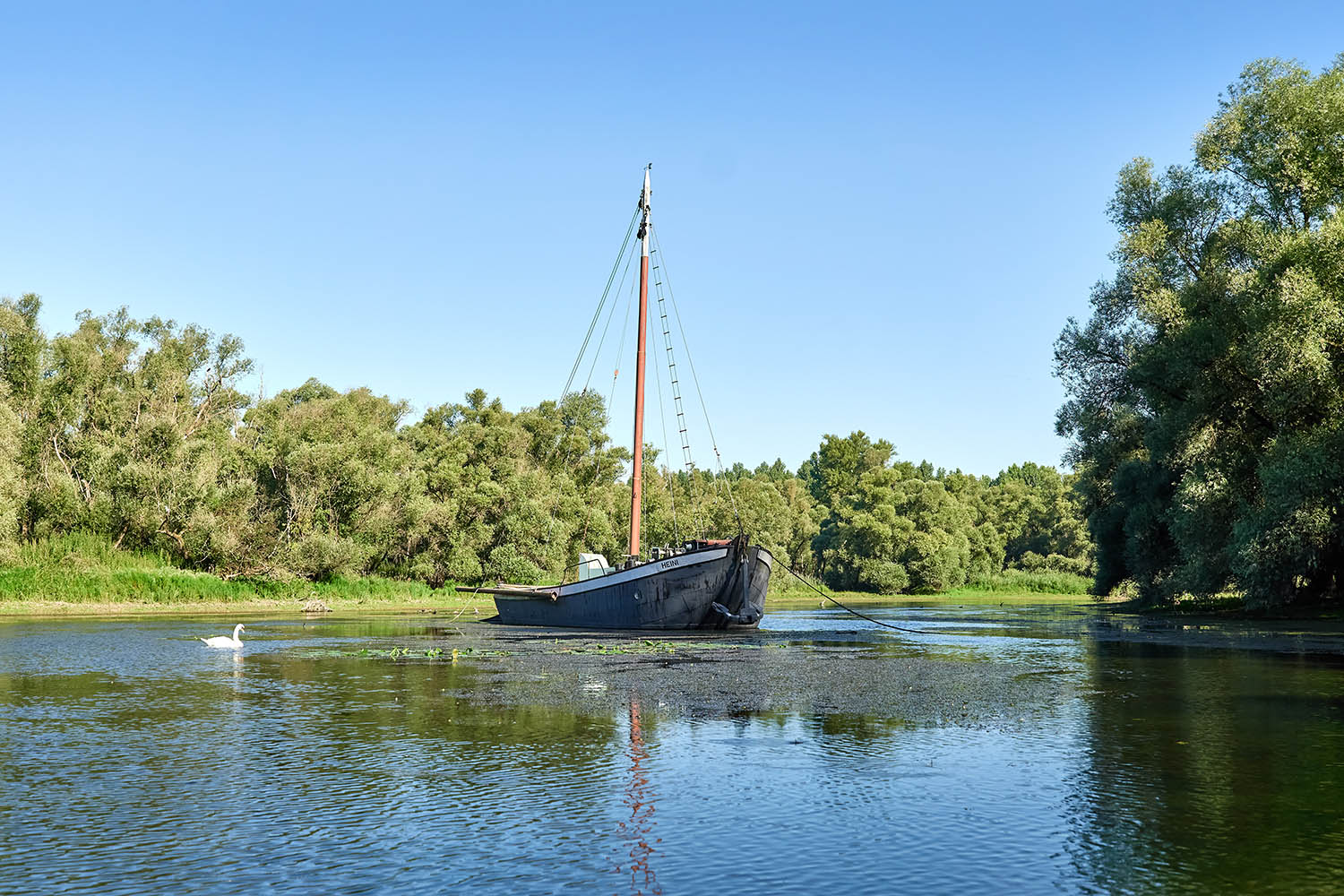 Der „Aalschokker“ ist ein beliebtes Ausflugsziel. Das ehemalige Fischfangboot ist Teil des grenzüberschreitenden Pamina-Rheinparks und liegt direkt beim Rheindamm Höhe Wintersdorf.