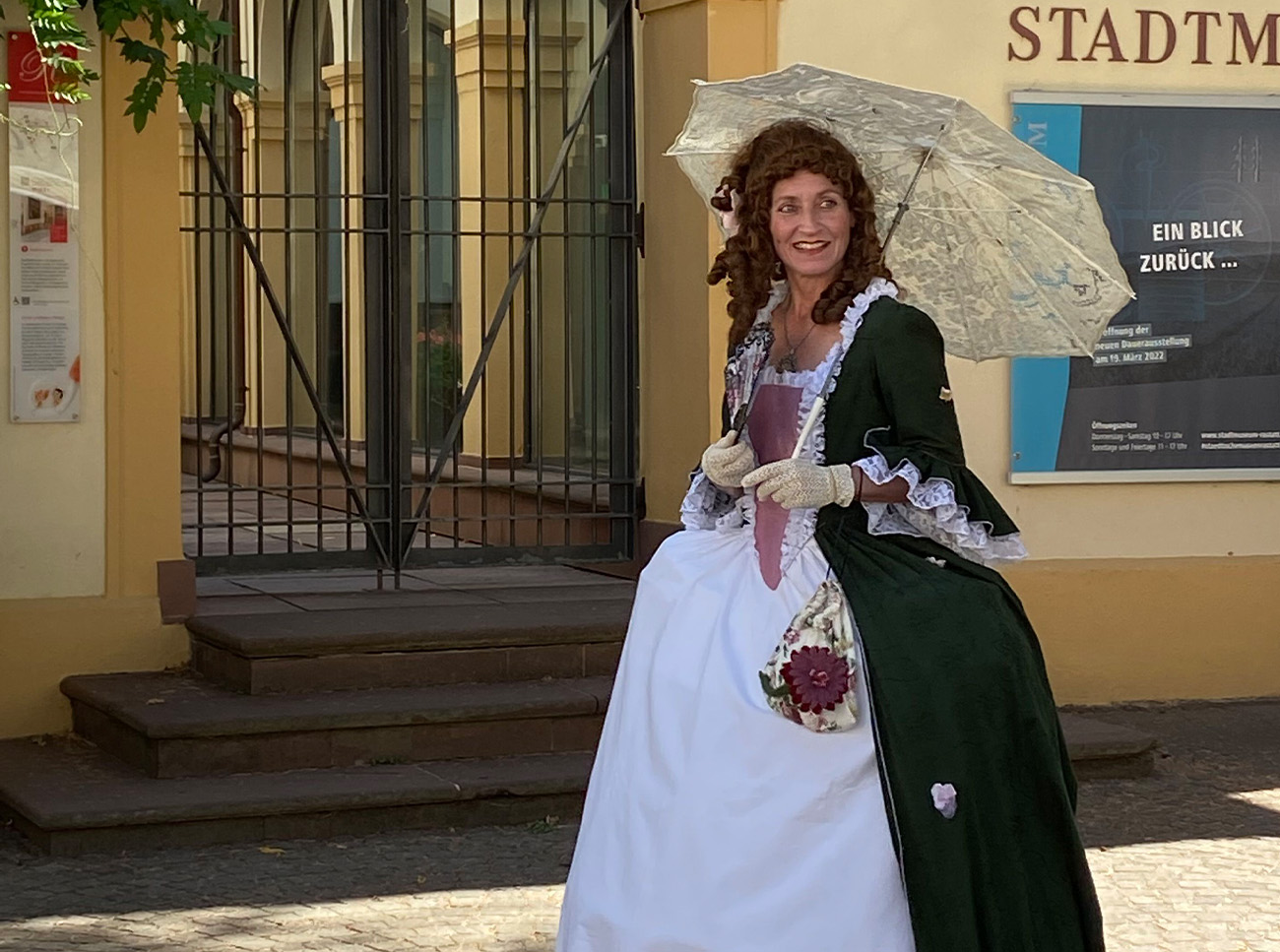 Gemeinsam mit einer Hofdame geht es am Samstag, 7. Juni, ab 11.30 Uhr zu einer Stadtführung durch Rastatt. In rund eineinhalb Stunden führt die adelige Dame vom Hofe des Markgrafen von Baden-Baden interessierte Teilnehmerinnen und Teilnehmer in die glanzvolle Zeit des 18. Jahrhunderts. Sie zeigt die Stadt aus einer anderen Perspektive und erzählt während der Führung viel Wissenswertes, aber auch Klatsch und Tratsch aus der Zeit des Barock.