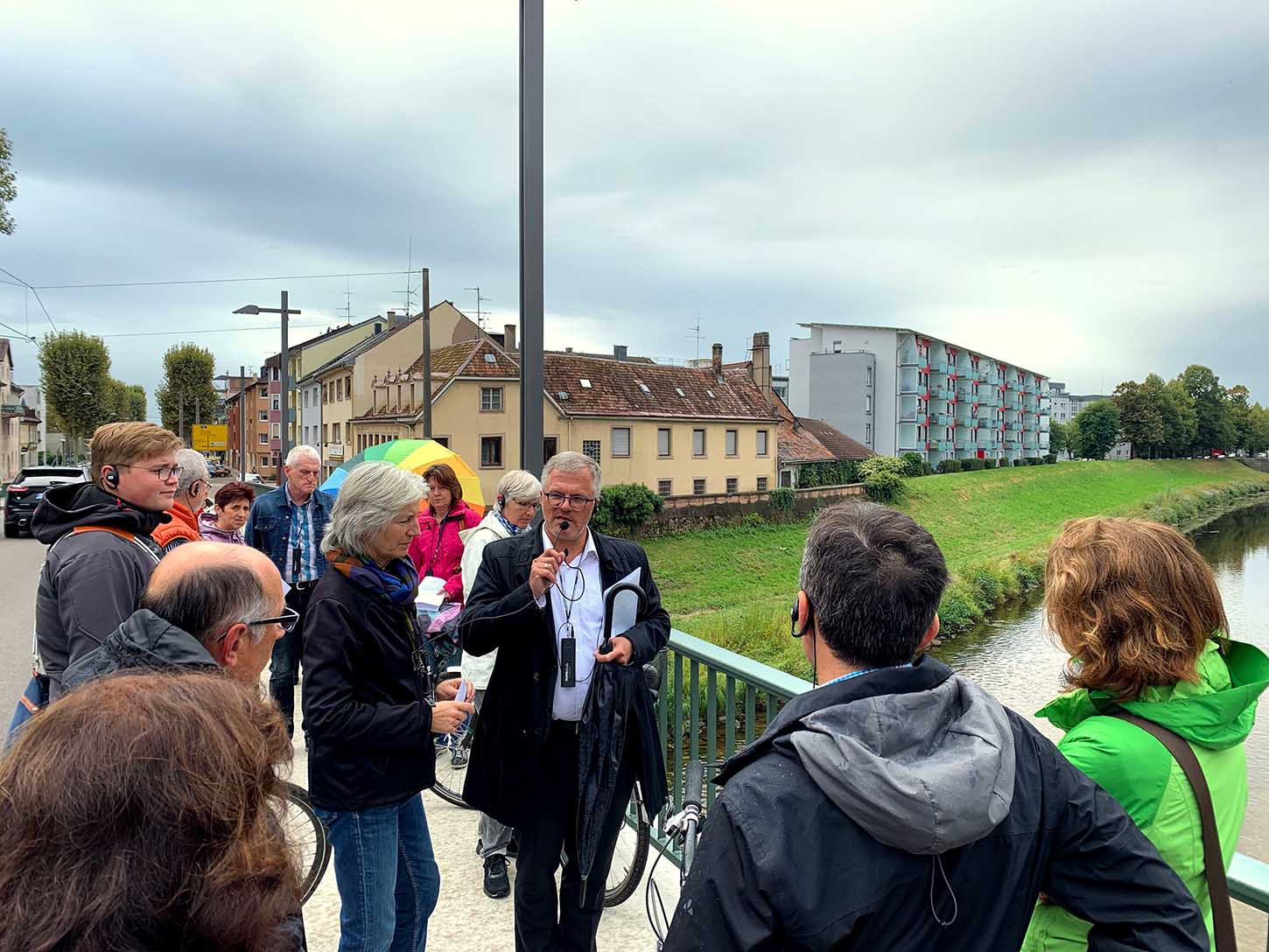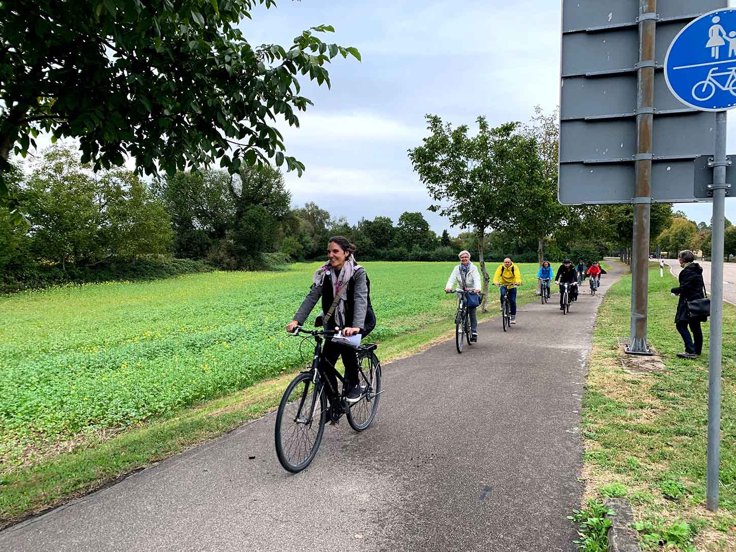 Die Radgruppe trifft auf die Fußgruppe. Foto: Stadt Rastatt/Isabelle Joyon