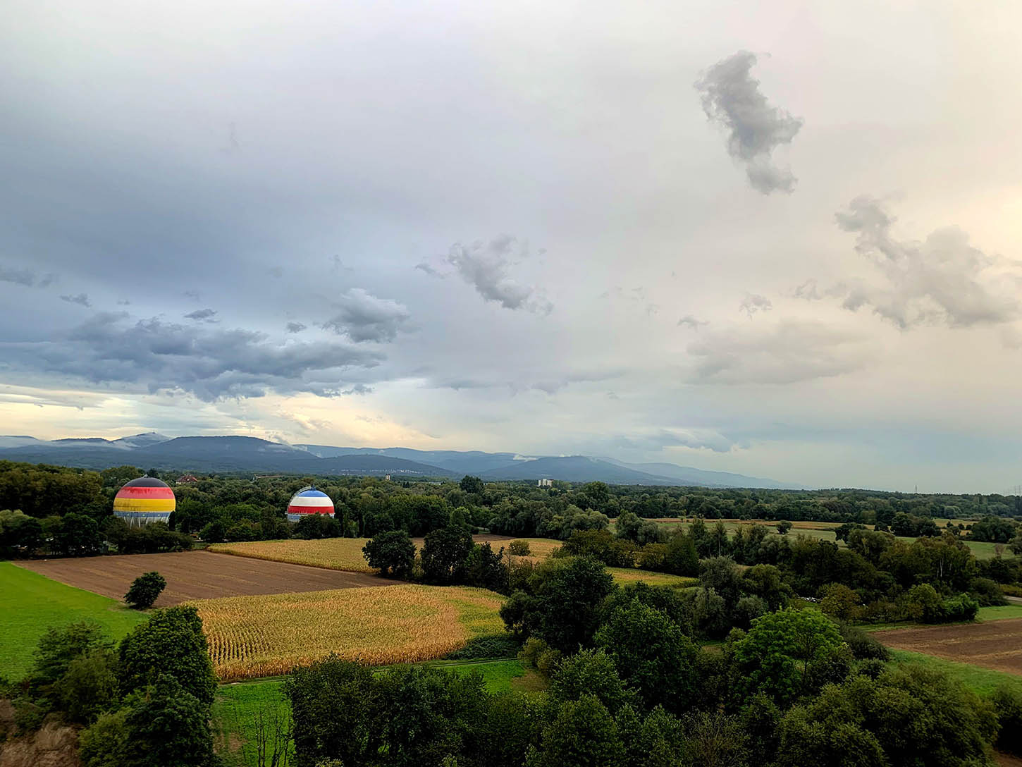 Von der Drehleiter aus sind die Gaskessel zu sehen. Der wolkenverhangene Himmel kann die Aussicht nicht trüben. Foto: Stadt Rastatt/Isabelle Joyon