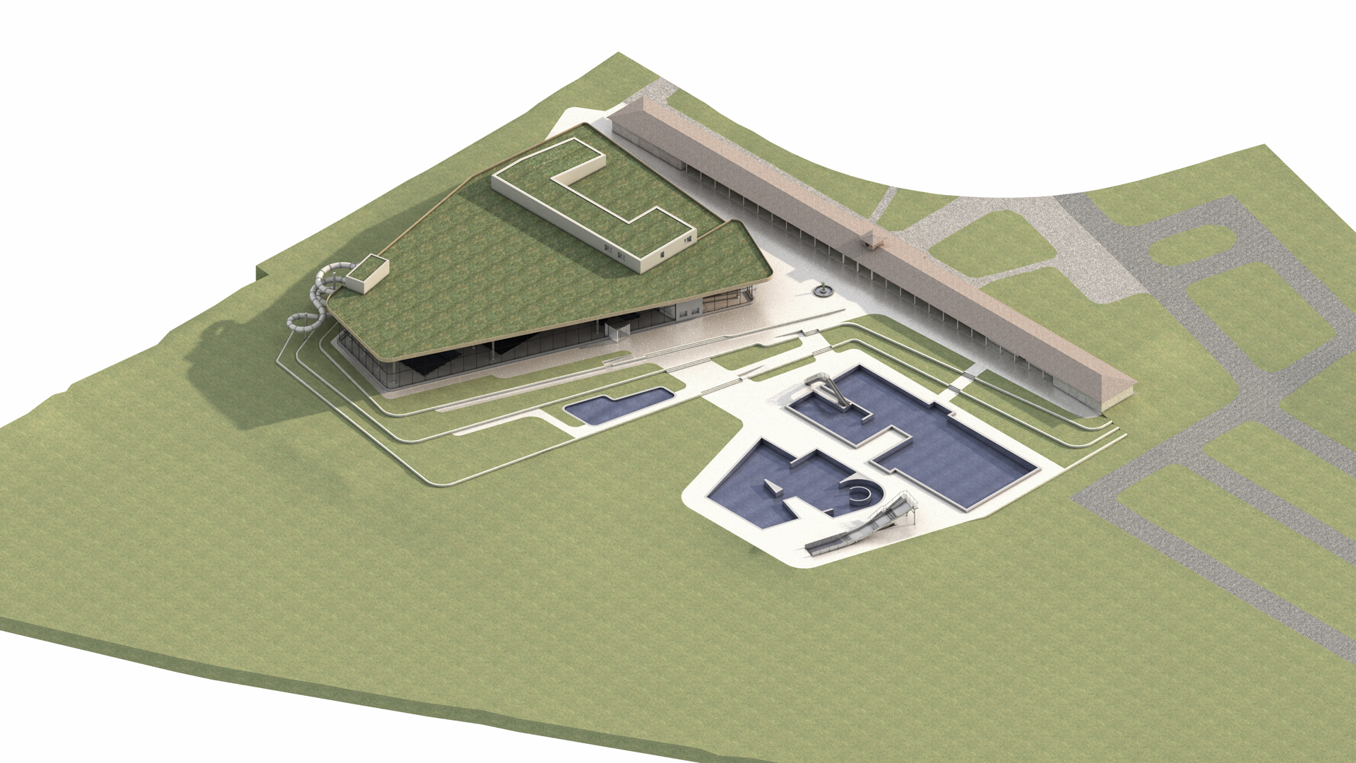 Im Hallenbad wird es unter anderem ein Schwimmerbecken geben mit sechs 25-Meter-Bahnen, ein Kursbecken, ein Lehrschwimmbecken, ein Springerbecken mit Sprungturm und Kletterwand, ein Kinderbecken sowie einen Rutschenturm.